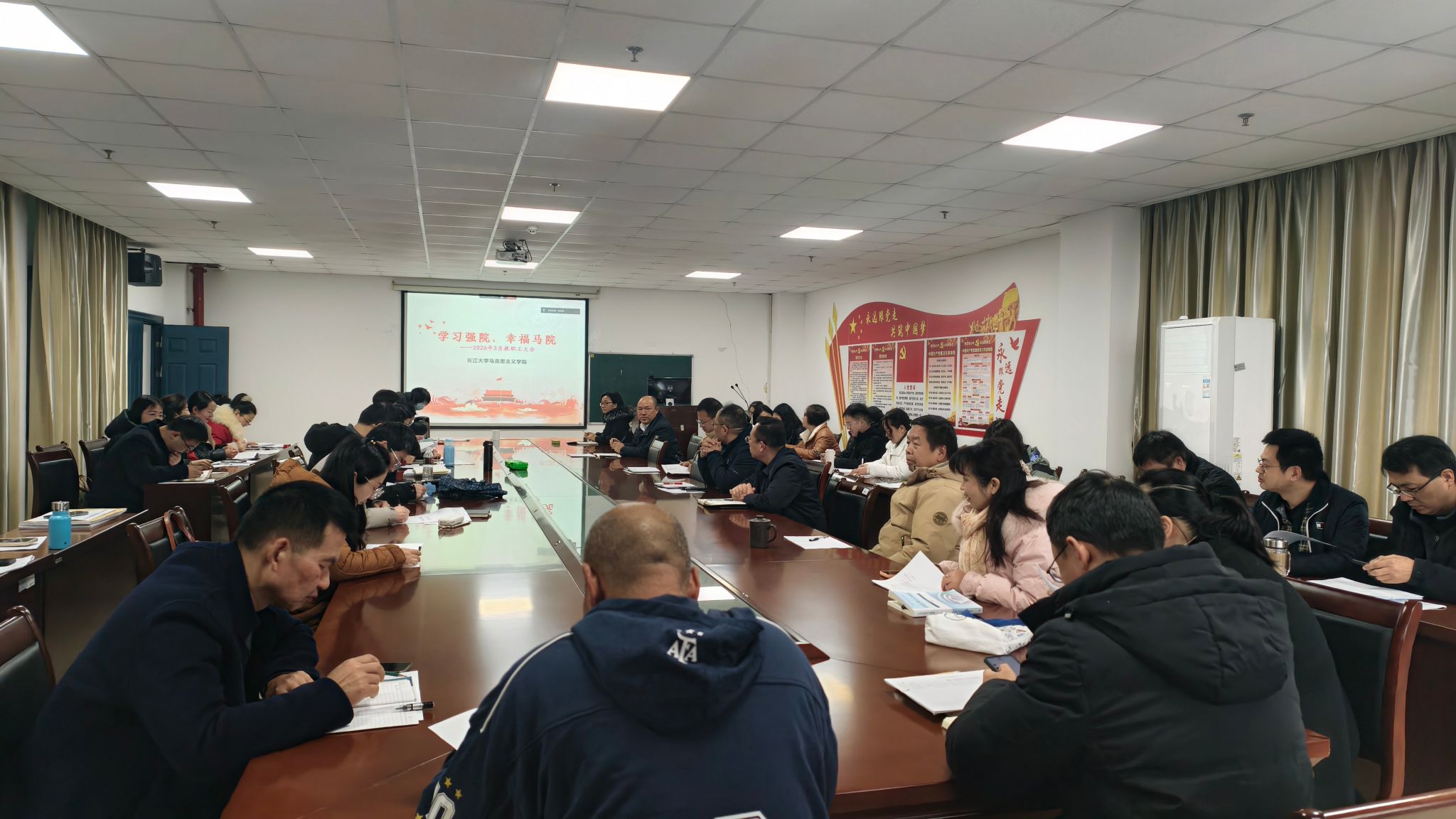 3月1日上午,皇冠体育官方网站在文科楼1104室召开全体教职工大会,全面部署新学期重点工作,凝聚发展共识。会议由院长姜学勤主持,全院教职工参会。