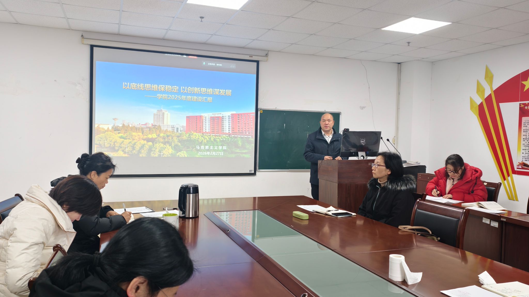 皇冠体育官方网站其他领导班子成员依次就分管工作进行安排部署,明确工作重点和推进方向。副院长张莉强调了开学第一周教学工作安排,讲解了思政课教学质量提升计划和以赛促教的工作举措;副院长涂江波复盘了2025年科研工作中存在的短板与不足,就深入推进有组织的科研提出了实施路径;党委副书记竺正海围绕员工工作“稳基础、促规范、亮特色”的工作思路,提出了“三查”、“两关注”的具体要求。