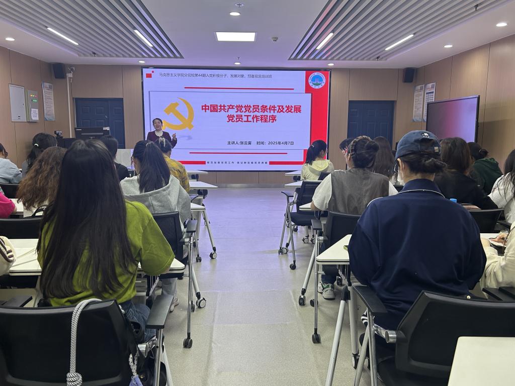 会议伊始,张云雾介绍了皇冠体育官方网站分党校培训方案。随后,她对入党条件及流程进行了详细地讲解,强调了党员发展工作的“十六字方针”和“四个严格”的工作要求。