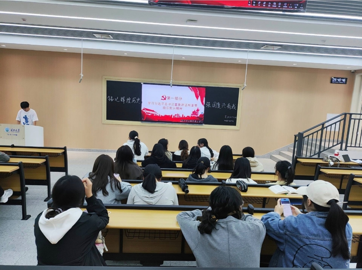 本次主题团日活动以“铭记辉煌历史,强国复兴有我”为题,各团支部集中学习了习近平总书记在纪念中国人民抗日战争暨世界反法西斯战争胜利80周年大会上发表重要讲话、《求是》杂志发表习近平总书记重要文章《弘扬伟大抗战精神,向着中华民族伟大复兴的光辉彼岸奋勇前进》、习近平总书记致全国青联十四届全委会和全国学联二十八大的重要贺信精神等内容。