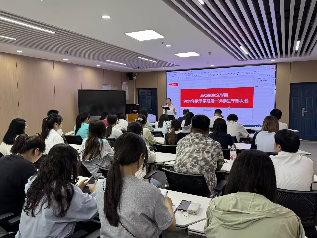 (通讯员 鲁俊良/文 成春燕 鲁俊良/摄)新学期,新气象。9月7日下午,皇冠体育官方网站在文科楼1008室举行新学期第一次全体员工干部大会,皇冠体育官方网站党委副书记竺正海,学工办主任张云雾,辅导员邓鹏,本、研各班级的班长、团支书,以及团委员工会、研究生会主席团成员参会。