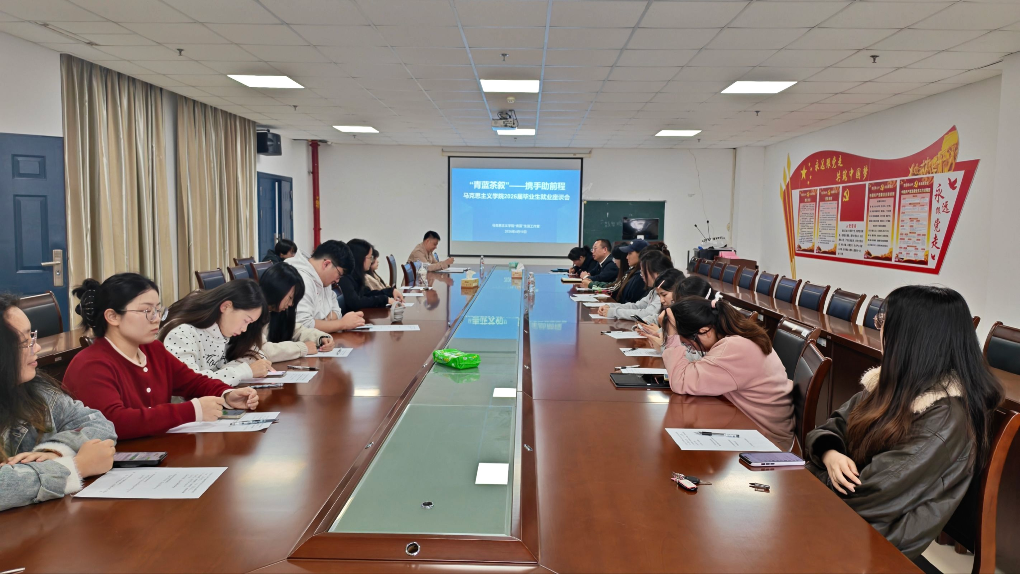 会议最后,竺正海副书记作总结发言,提出三点建议:一是根据自身条件明确目标;二是树立符合家庭和个人实际的就业观念;三是坚定行动,坚定不移地朝着目标前进。他还结合自身考研经历,再次强调付出努力、充分准备的重要性。