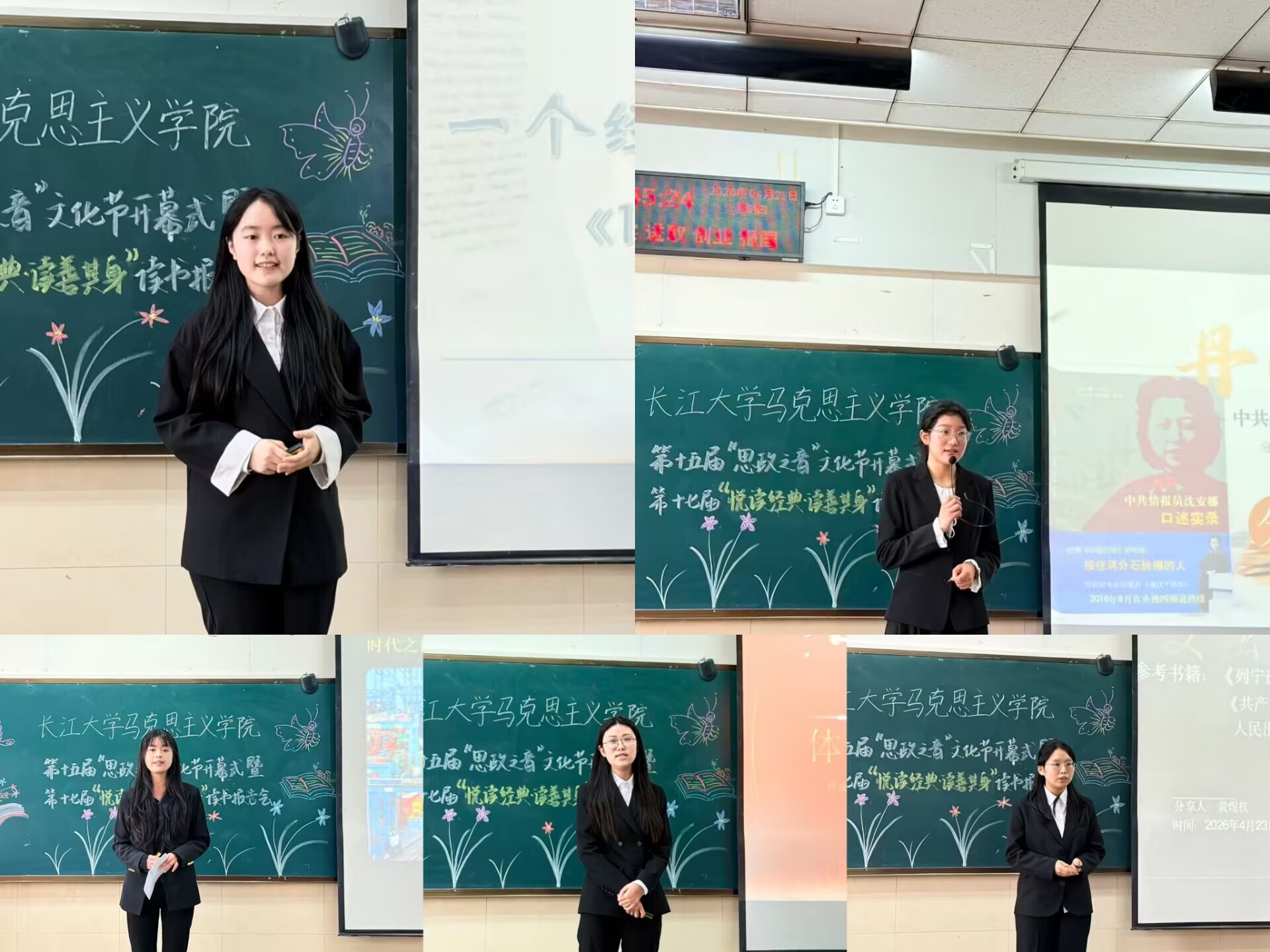 (通讯员 丁靖易/文李欣怡夏宇靚/摄)4月23日下午,皇冠体育官方网站第十五届“思政之音”文化节开幕式暨第十七届“悦读经典·读善其身”读书报告会决赛在12教204室顺利举行。皇冠体育官方网站党委副书记竺正海、团委书记张云雾出席活动,与马院学子共品书香。